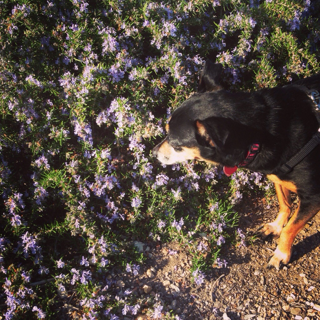 And that activity where you put your dog on a leash and take her outside is called a “walk” because dogs actually enjoying walking, as opposed to what I used to call a “walk” but was actually more of a “dragging”. Indy knew the flowers were there all along, and she likes to smell them too.
