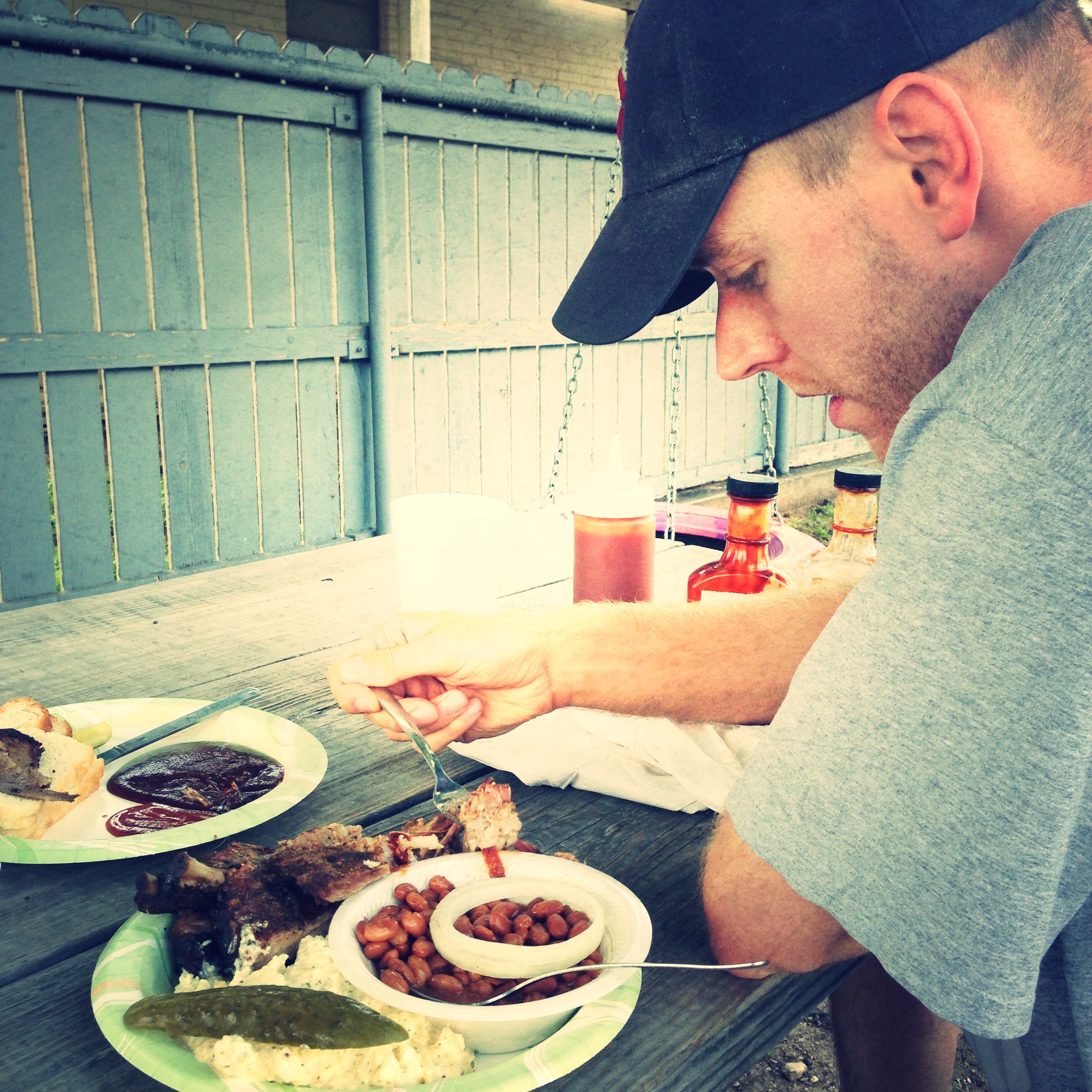 The herd was up and moving early on Saturday. We raided the continental breakfast, repacked the car, and hopped in, knowing we were in for the long haul today. Starting in El Paso, where we had splurged on a nice hotel room with wi-fi only to spend about 8 hours in it, we wanted to make it to Houston in time to see Bill’s childhood friend Jim and finally meet his girlfriend Sanja. Even though we had a long way to go, I made sure Bill knew I wanted to see Texas along the way. The main goals: eat some real Texas BBQ and stretch our legs in San Antonio.